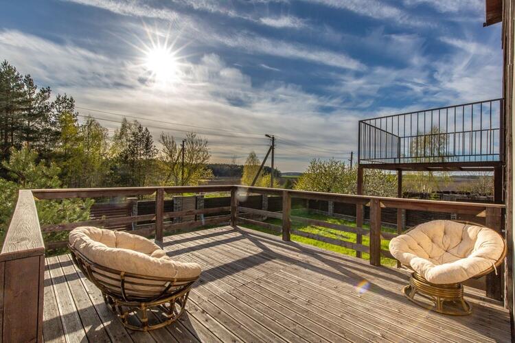 Первый жилой этаж состоит из кухни, гостиной, прихожей, санузла. Из каждой комнаты первого этажа можно выйти на роскошную террасу, которая окаймляет дом с трёх сторон, что позволит утром выпить на свежем воздухе чашку кофе или чая под пение птиц, а вечером, обсуждая проведённый день, готовить барбекю и наслаждаться закатом.