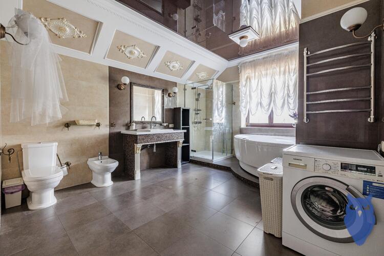 - просторная ванная покрыта итальянской плиткой. Сантехника в ванной также от Вилерой и Бох. Ванна оборудована системой циркуляции и массажа.