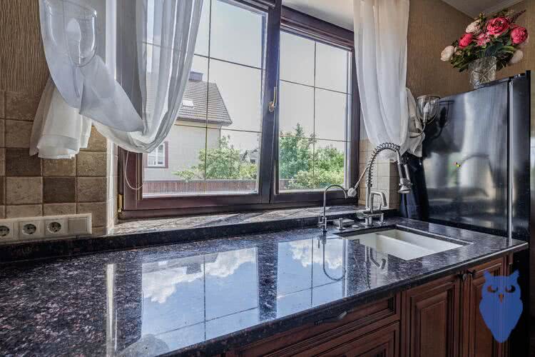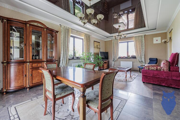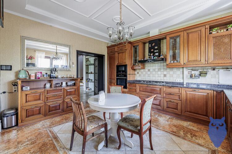 - кухня оборудована фирмой «Артдеко». Фасады – «вишня». Встроенный холодильник «Либхер». Техника в кухне: Сименс и Бош. Дополнительный холодильник большого размера.