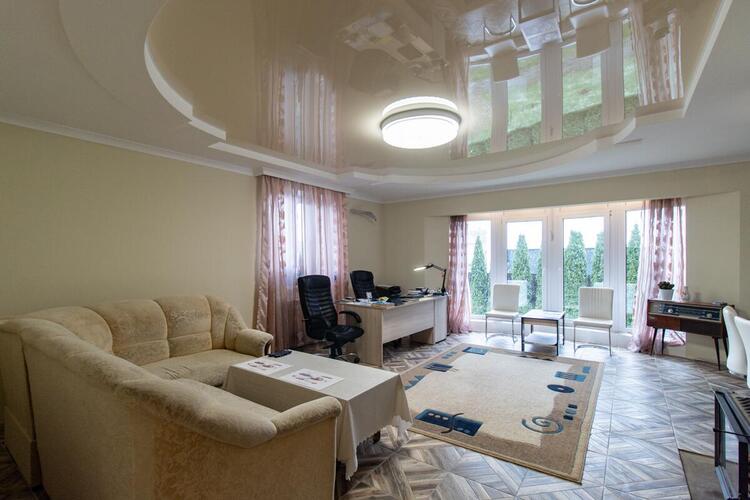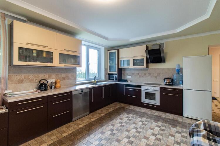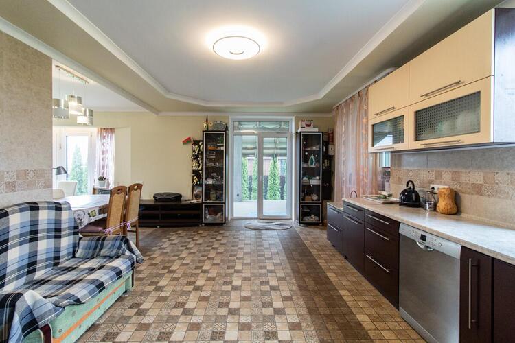 Продается современный, удобный для жизни коттедж 2020 года постройки.Оригинальный проект фасада с округлой лестницей и навесом,крытая терраса на первом этаже и большая крытая терраса на втором.Внутри здание спланировано так,что вы сразу,попадая в дом ,ощущаете комфорт и расслабление.Большая гостинная с камином плавно переходит в столовую,высокие потолки и панорамные окна создают пространство и лёгкость.Дизайн первого этажа выдержан в теплых бежевых и персиковых тонах.Нет эклектики,вычурности и лишних деталей.Из зоны столовой вы попадаете на уютную террасу с видом на розарий.Интересно и оригинально оформлена ванная комната.Есть комната отдыха.Весь первый этаж полностью готов для проживания.