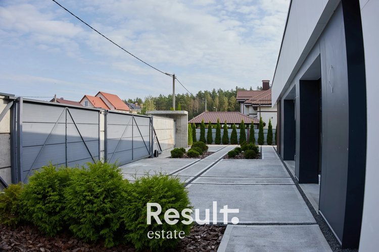 На участке выполнены все ландшафтные работы: газон с авто поливом, высажены туи, перед домом оборудовано место для кастрища или зоны барбекю.