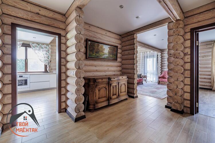 - 22 см цилиндрованное бревно через жгут с 50 мм межвенцовым утеплителем Вилатерм в тёплом шве из акрилового герметика Remmers, звукоизоляция между этажами, 2х камерные деревянные стеклопакеты с атермальным стеклом, входные двери с терморазрывом, межкомнатные двери – массив.