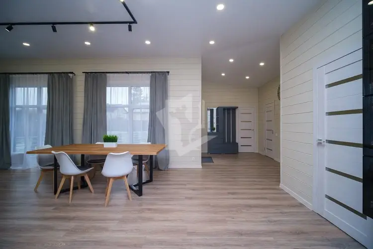 Стиль и Комфорт: Архитектура в стиле современного минимализма с панорамным остеклением, наполняющим пространство светом. Просторная гостиная-столовая плавно перетекает в современную кухню-гостиную — идеальное место для встреч с друзьями и жизни семьи.