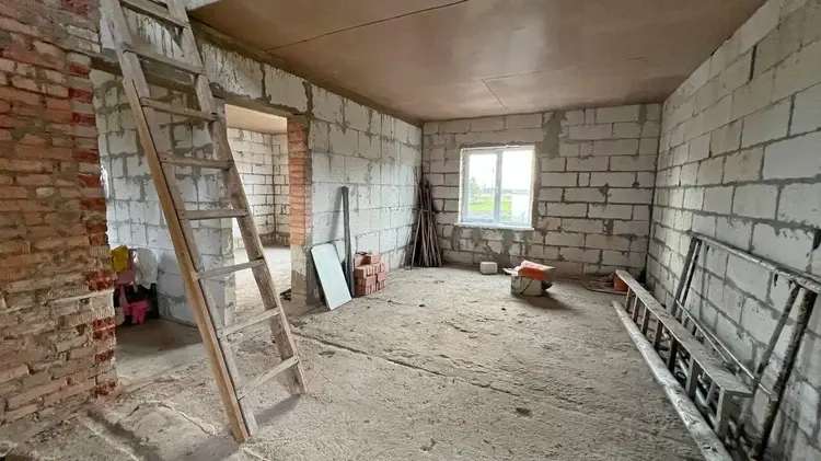 Имеется подвал размером в пол дома. На полу свежая стяжка, высота до перекрытия первого этажа – 2м.