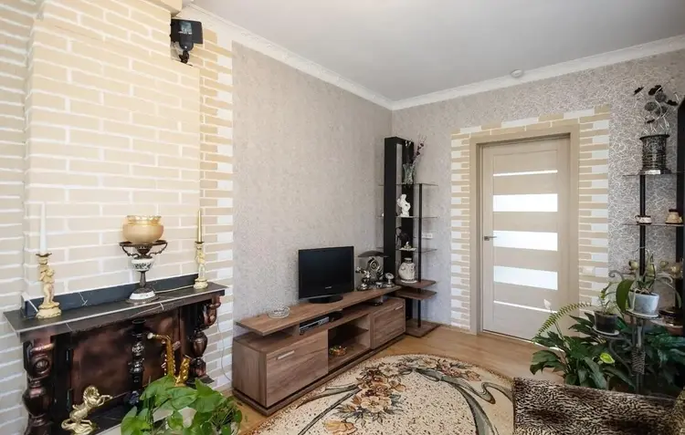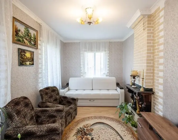 Дом общей площадью - 55.3 кв.м. имеет три раздельные комнаты. Выполнен свежий ремонт. Установлена встроенная кухня, на стенах декоративная штукатурка , на полу плитка ( теплый пол). В комнатах на полу ламинат, оклеены обои. Совмещенный с/у, на полу плитка (теплый пол), потолок-панели. Есть печь (камин). Есть погреб.
