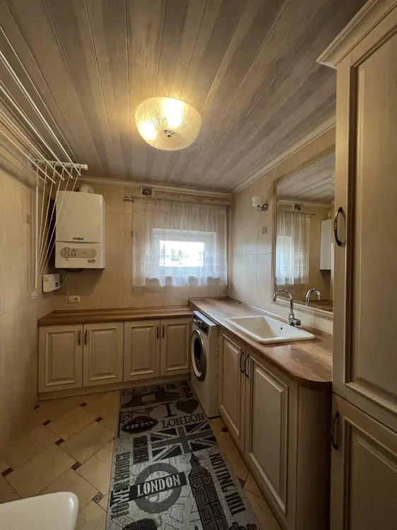 Дом полностью готов для проживания! Сделан качественный еврo ремонт, все материалы и техника- Европа. Планировка и дизайн европейского стиля продумывались до мелочей для удобства и максимально комфортной жизни. В доме 5 жилых комнат, большая кухня-гостиная с встроенной кухней и качественной техникой, 2 санузла. Огромная гардеробная комната, действующий камин с функций отопления всего дома естественным путем, Большой подвал с котельной, так же на цокольном этаже расположен бильярдный зал, комната для фитнеса с тренажерами и большими зеркалами.Материал крыши-черепица"Забудова". По всему периметру дома видеонаблюдение с накопительной системой и бесперебойным питанием.Если вы задумывались о расширении и покупке дома, но никак не могли решиться на такой серьёзный шаг- звоните и записывайтесь на просмотр!