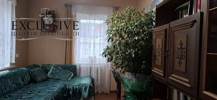 Дом деревянный, имеет все центральные коммуникации: электричество, отопление и канализация. Крыша - шифер. Дом общей площадью - 48,7. кв.м., имеет три комнаты (одна из них проходная). Выполнен свежий ремонт. Окна ПВХ. Установлена встроенная кухня, стены оклеены. Пол: деревянный, ламинат, линолеум, плитка в сан.узле. Совмещенный с/у, облицован кафелем, потолок-панели. Есть погреб. 2 входа в дом.