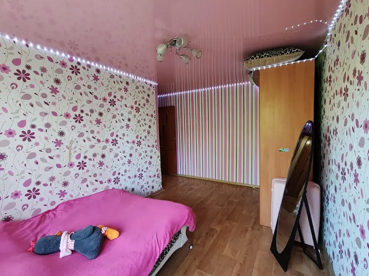 Натяжные потолки в 3 жилых комнатах и на кухне.