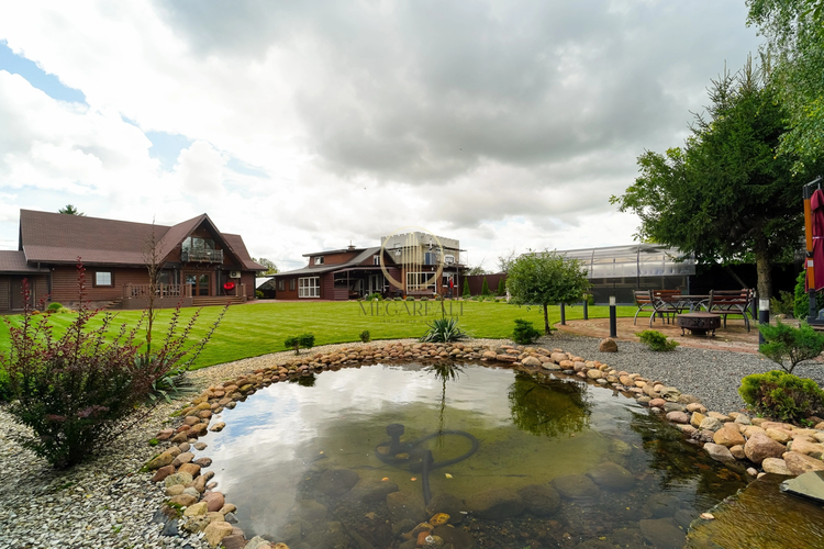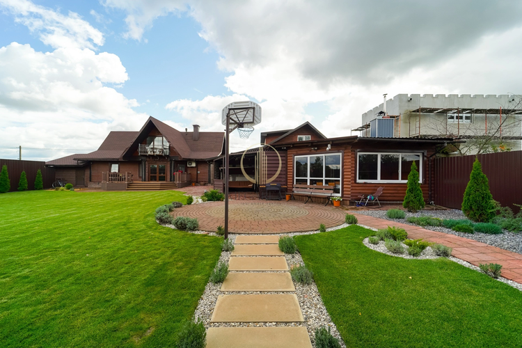 На участке выполнен ландшафтный дизайн, оборудован пруд. Так же на участке расположена отдельно стоящая баня, бассейн и оборудован навес для авто.