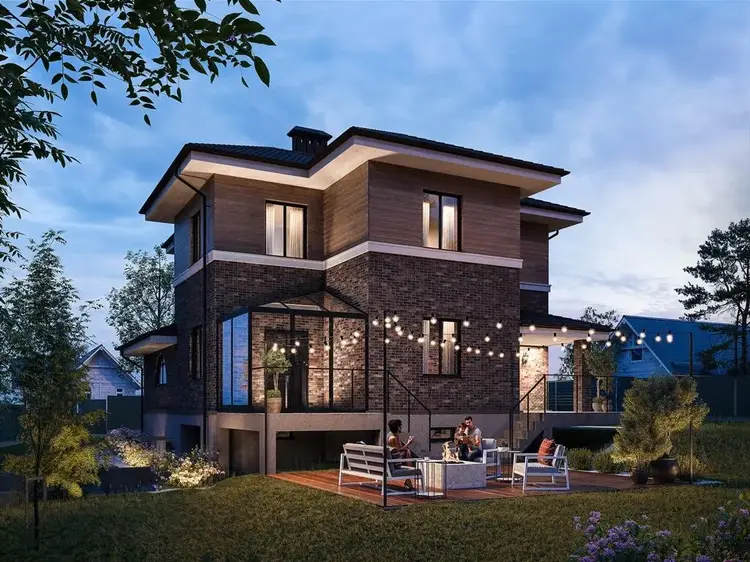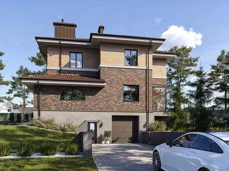 - Количество уровней: два этажа плюс полноценный цокольный этаж с гаражом. Высокие потолки.