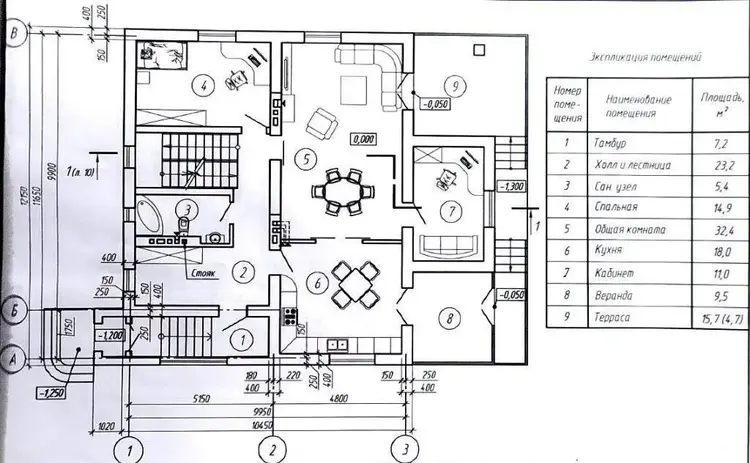 - Общая площадь дома: 215,5 кв.м. плюс цокольный этаж.