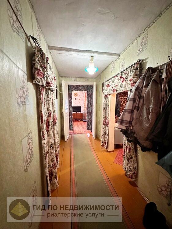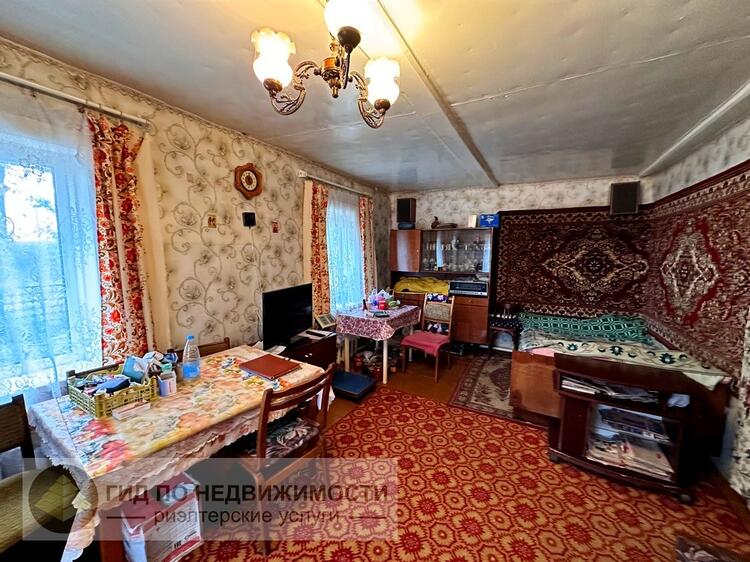 Продается одноэтажный жилой бревенчатый дом в агрогородке Ерёмино по улице Советская, площадью 87 кв.м., состоящий из 5-ти жилых комнат (площадью 20,5 кв.м., 5,8 кв.м., 6,5 кв.м., 8,3 кв.м., 7,8 кв.м.), двух кухонь (площадью 9,6 кв.м., 16,4 кв.м.), в одной из которых установлена печь, в другой – газовая плита, кладовой, предбанника. Фундамент дома кирпичный, крыша – шифер. Год постройки 1967. В доме установлены пластиковые окна, полы – дощатые, стены - обои. В дом заведены свет, газ, вода. Также установлен газовый котел на отопление и городской телефон.