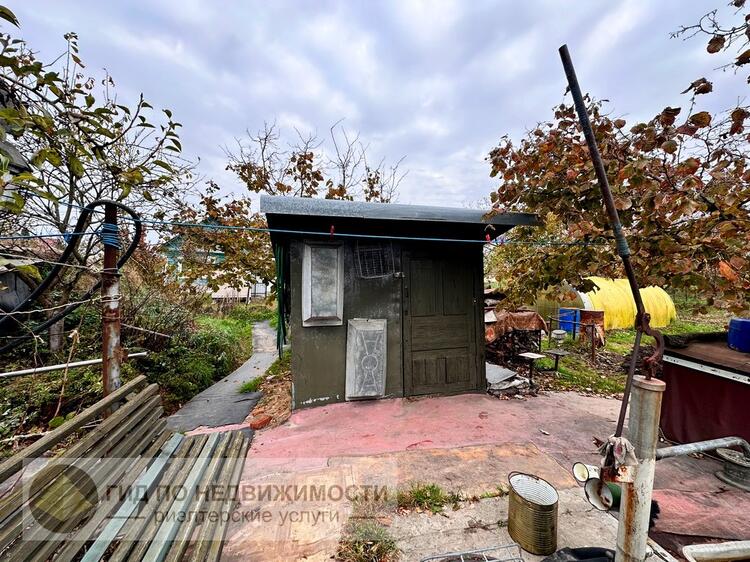 Дом расположен на земельном участке площадью 18,44 сотки. Участок ровный, прямоугольной формы, ухоженный, с освещением (установлен прожектор), огорожен забором с воротами для заезда автомобиля. Место высокое – не затапливает. Земля плодородная – чернозем, имеются плодово-ягодные насаждения. Так же на земельном участке расположены действующая баня, кирпичный гараж, площадью 22,4 кв.м., 3 навеса, глубокий, прохладный погреб, сарай и бытовка для инвентаря с освещением, беседка, парник из поликарбоната, 2 скважины 16 метров с автоматической насосной станцией.