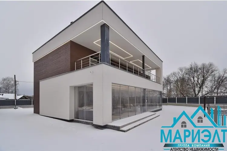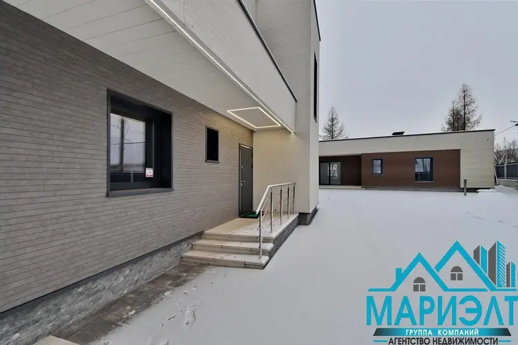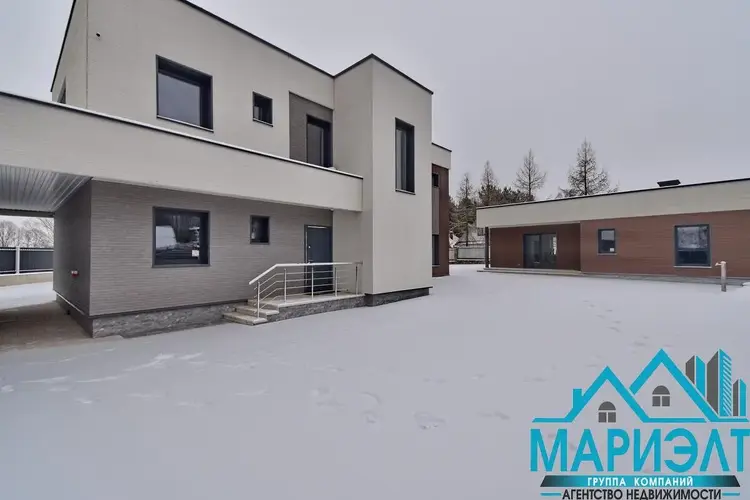 На участке расположены два дома в современном стиле.
