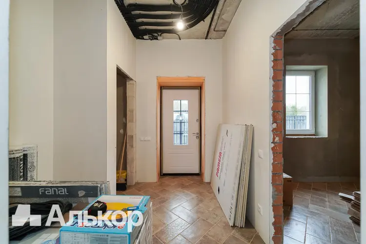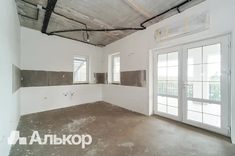 Качественная входная дверь с облицовкой из корабельной фанеры. Распашные окна в пол в спальнях и кухне-гостиной.