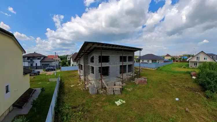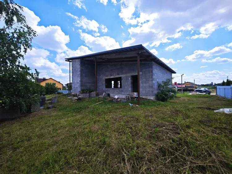 Коттедж в ближайшем пригороде г.Минска в 18 км от станции метро «Малиновка». Располагается дом на ровном, прямоугольном участке в современной коттеджной застройке с респектабельными соседями. Трудозатратные основные монтажные работы уже выполнены, можно сразу же приступать к отделке дома. Дизайн и планировка дома современные и рациональные, воплощенные в жизнь дизайнером, который и является собственником дома. Фундамент дома из блоков ФБС, стены из керамзитобетонных блоков, кровля из металлочерепицы. Газовая труба у границы участка, розетки уже выведены в электрощиток, трубопровод водоснабжения заведен в дом, канализация по всему поселку местная. Оптимальная площадь участка не требует трудозатрат по поддержанию порядка, при этом на участке выделяется зона отдыха за домом и место для парковки автомобилей перед участком (видно на фото). Новому собственнику остаются фундаментные блоки, пильный материал, блоки для перегородок и возведения стен гаража/бани. В паре минут езды находятся несколько магазинов, детсад, школа, иные социальные объекты и учреждения, станция электрички «Фаниполь» и остановки общественного транспорта. Просмотры в удобное для Вас время, тогда же и обсуждение цены.