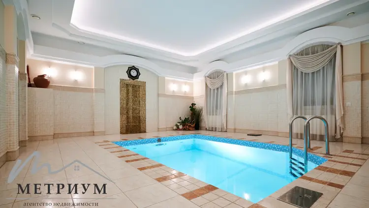 В большом доме есть зона СПА + сауна, тренажерный зал, бильярд, гостиная, столовая, 10 комнат, подземный гараж на 2 машины.