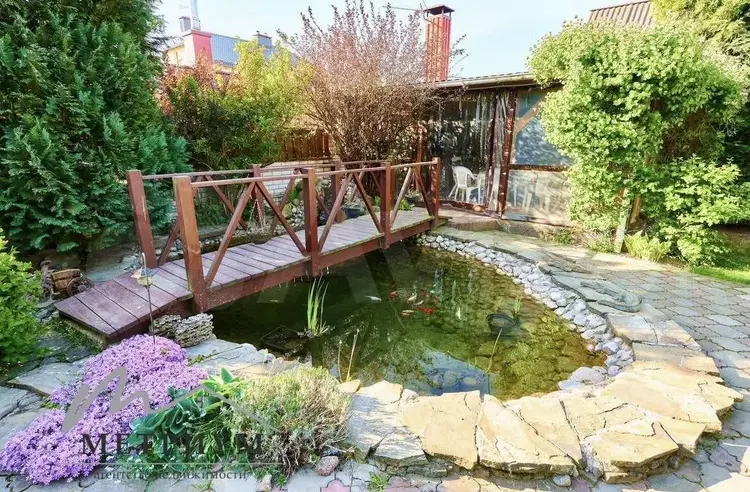 Ухоженный участок в частной собственности, выполнены ландшафтные работы, есть пруд, беседка с обустроенной зоной барбекю.
