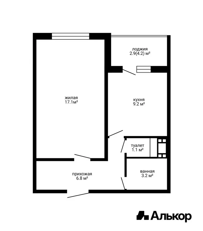 Площадь по СНБ - 40,3 кв.м., улучшенной планировки.