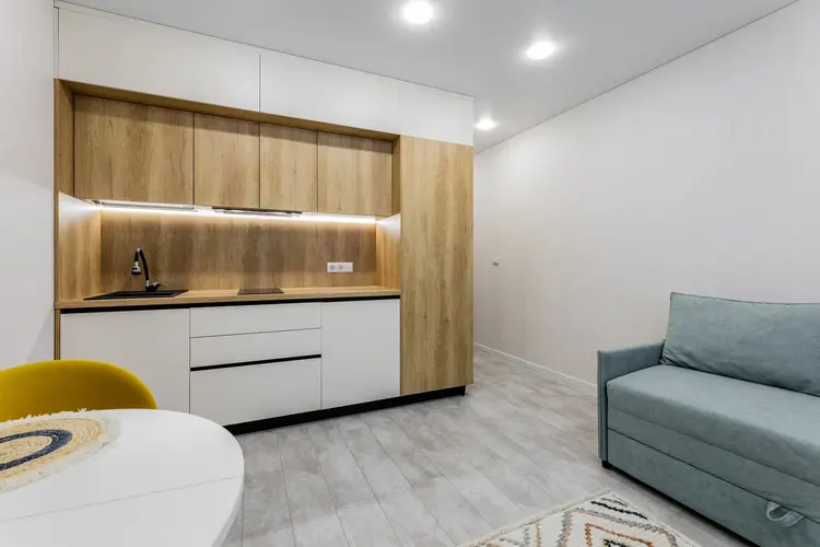 • Жилая комната с кухонным оборудованием: кухня-студия дает простор и больше света.
