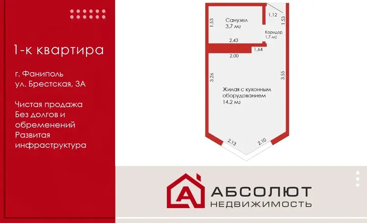 Продается уютная студия 19,6м2 (СНБ) с хорошим евро ремонтом! Идеальный вариант вблизи г. Минска