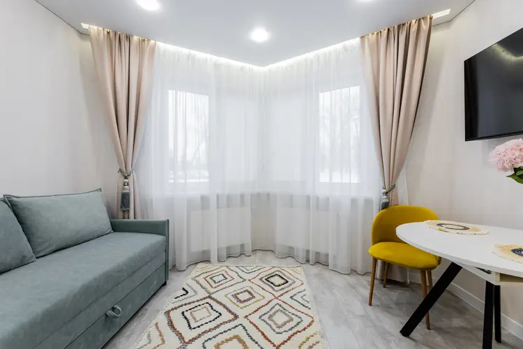 -Из окон открывается панорамный вид на Фаниполь и внутренний двор - без плотной застройки напротив, с ощущением пространства и света. Высота этажа обеспечивает тишину: уличный шум сюда практически не доходит, даже в дневное время. Воздух заметно чище, меньше пыли, а естественная вентиляция работает лучше, чем на нижних этажах.