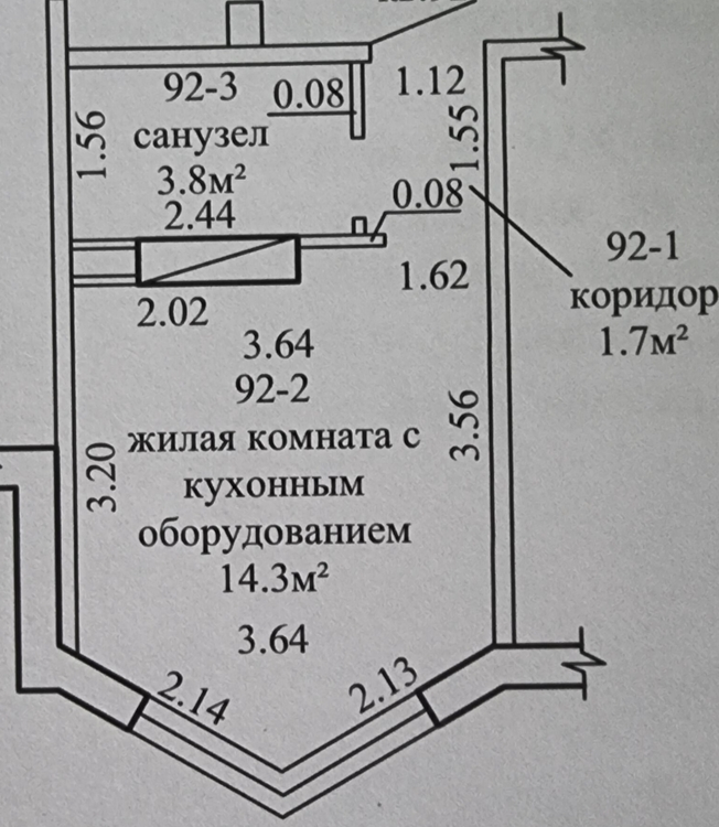 Площадь по СНБ 30.3 кв.м. Общая площадь 28,7 кв.м., жилая площадь 25,1 кв.м., и просторный застекленный балкон с панорамными окнами с видом на озеро.