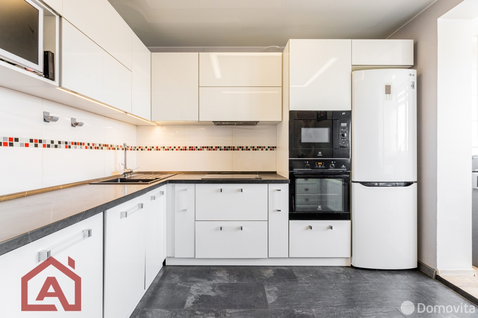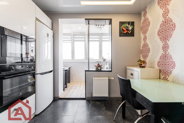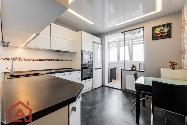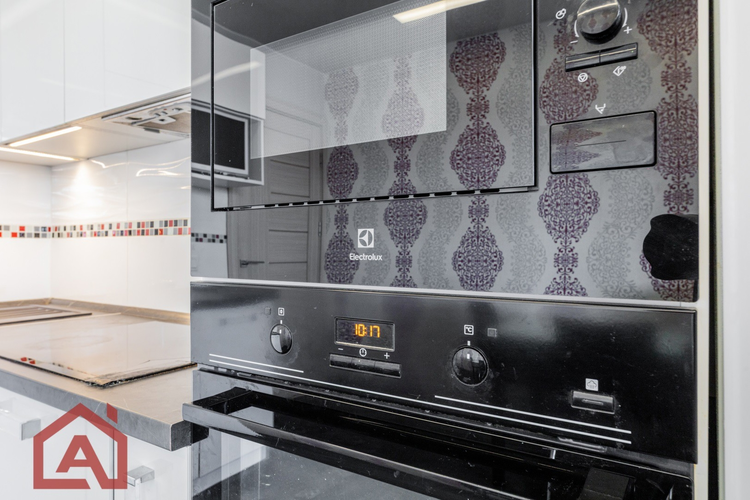 • Просторная кухня: 9,3 м² правильной квадратной формы со встроенной мебелью и надежной бытовой техникой— мечта хозяйки!