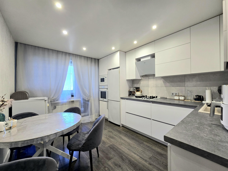 Просторная кухня 11,5м.кв. оснащена всей необходимой техникой. В квартире сделан качественный современный ремонт, позволяющий новому владельцу сразу заехать и жить. Уютный зеленый дворик с обустроенной детской площадкой, приветливые соседи. Рядом с домом всегда имеются свободные парковочные места.