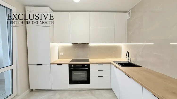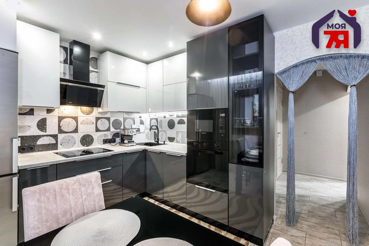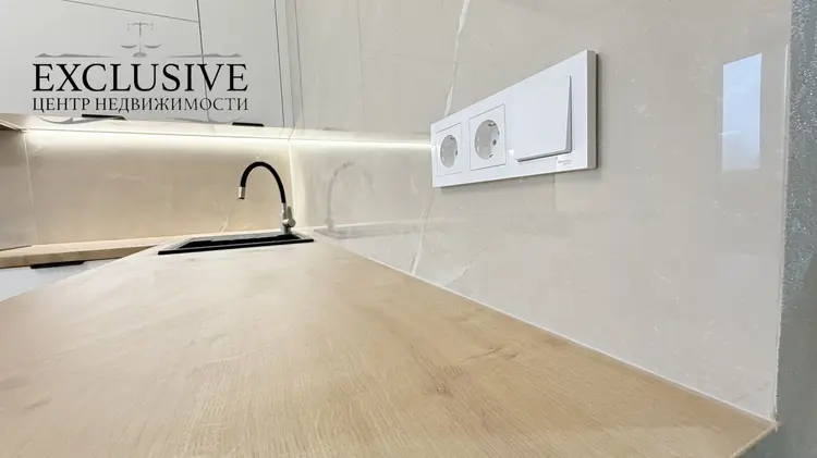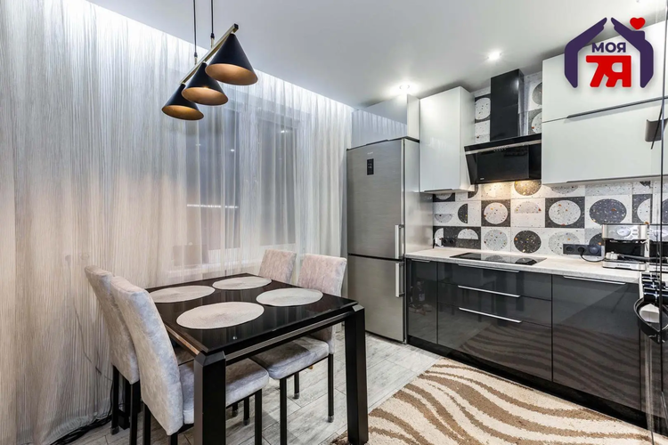 - Кухня оборудована всей необходимой бытовой техникой. Несколько режимов освещения позволяют менять атмосферу для семейных или романтических ужинов, а бар-сервант с подсветкой добавляет выразительности и функциональности.