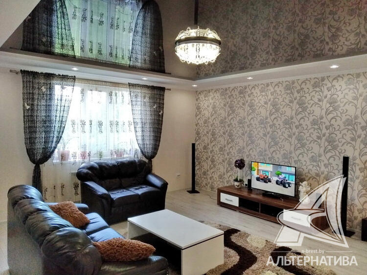 Жилой дом в Кобринском р-не. 2015 г.п. 1 этаж, мансарда, цокольный этаж. Общ.СНБ - 313,9 кв.м, общ.- 184,2 кв.м, жил.- 99,8 кв.м, кух.- 21,8 кв.м. 5 комнат, высота потолка - 2,66 м.