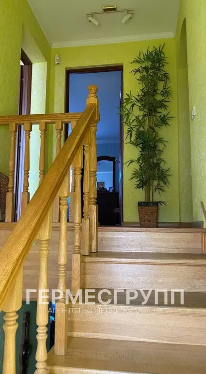 Материал стен кирпич, крыша металочерепица, на полу ламинат, плитка, дубовая лестница.