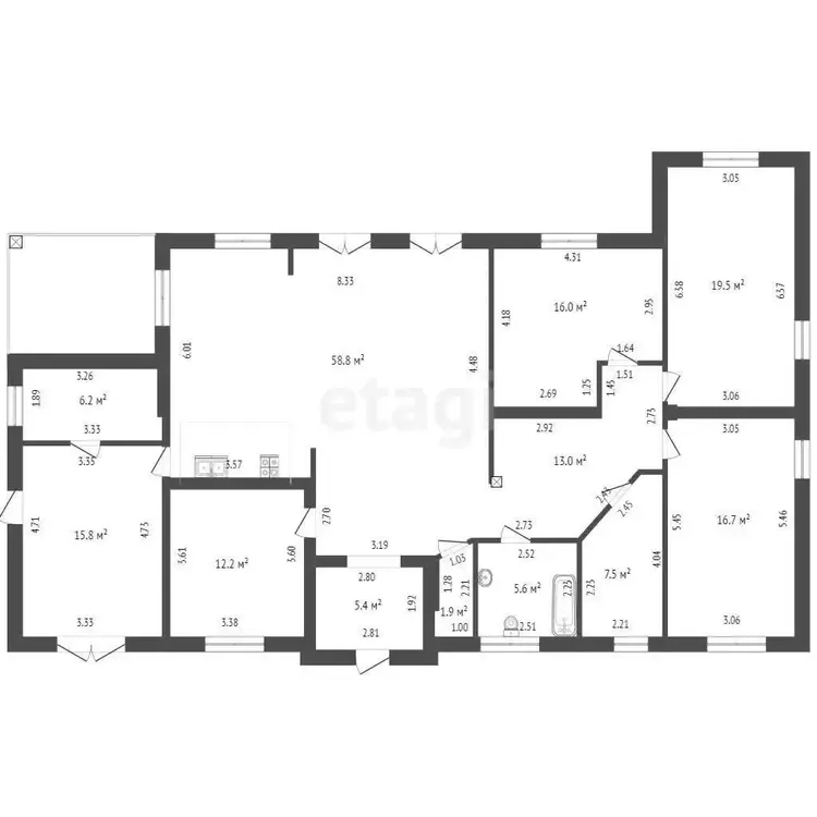 · - Четыре отдельные (изолированные) комнаты (12,2 м2, 16,7 м2, 19,5 м2, 16,0 м2)