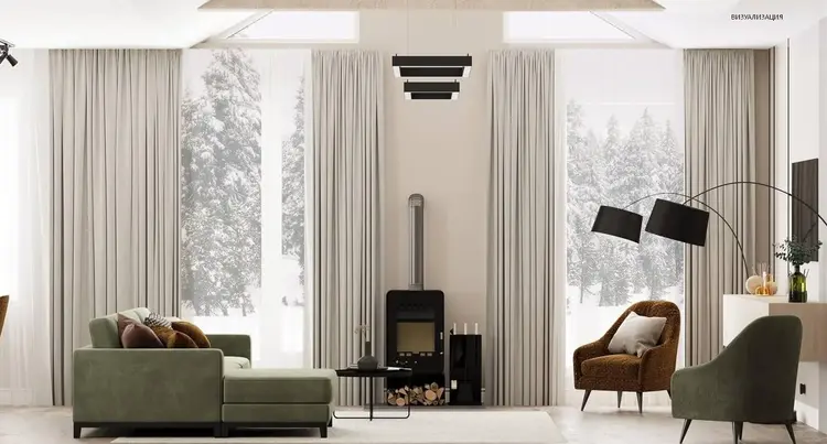 · - Предусмотрены вентиляционные шахты и шахта для камина