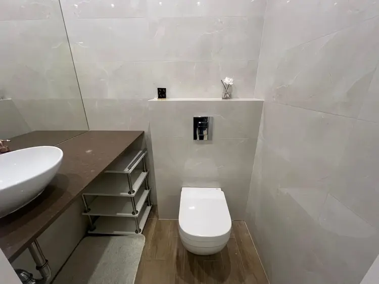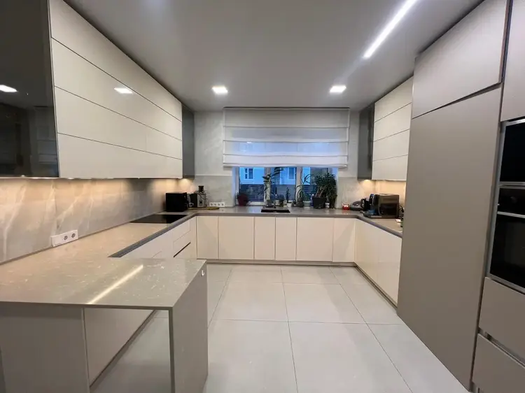 В доме большая комната, совмещенная с кухней, три спальни, 2 санузла, хозяйственная комната и котельная. Везде теплые полы.