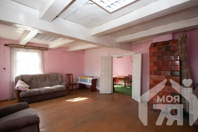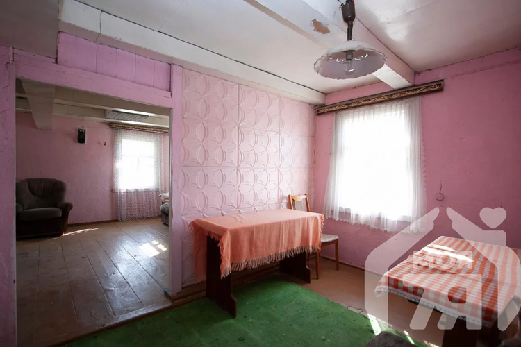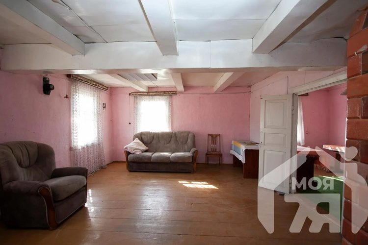 - Дом площадью 60,5 кв.м., из которых 38,6 кв.м. - жилая площадь. Одноуровневая планировка и бревенчатые стены представляют собой практичное решение для жизни в сельской местности.