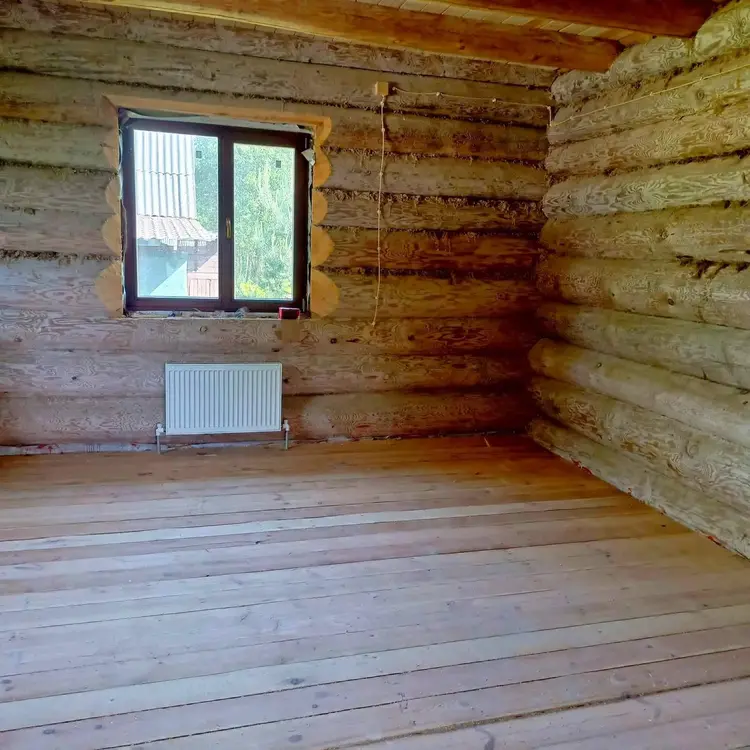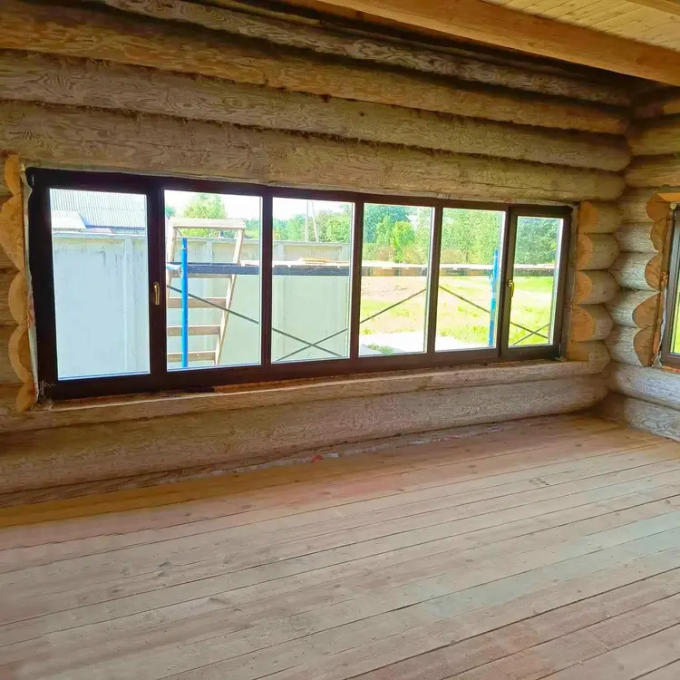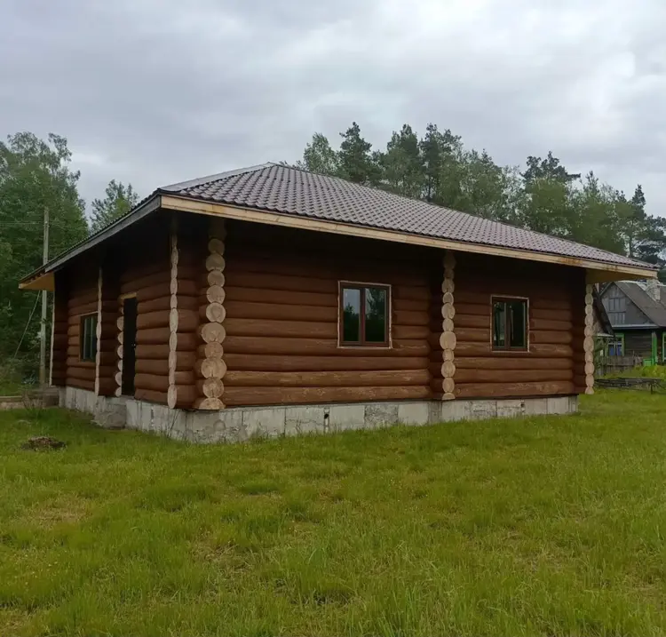 Дом собран плотной стыковкой бревен по технологии «канадский угол», известной своей прочностью и теплоизоляцией, из качественного кругляка зимней заготовки по всем правилам деревянного домостроения.