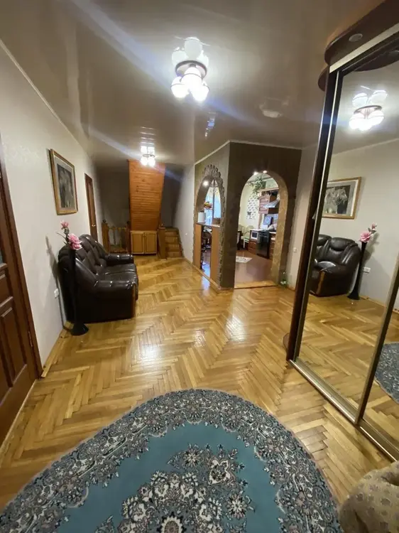 Продажа двухуровневого коттеджа. В доме есть мансарда, веранда, подвал, гараж. На первом этаже просторная кухня с встроенной мебелью и техникой (холодильник, посудомоечная машина, плита). На полу плитка с подогревом пола. Санузел раздельный. Просторные спальня и гостиная комнаты. На втором этаже: 2 спальные комнаты, гардеробная, санузел, кладовая. Есть мансарда. В цокольном этаже: гараж, подсобное помещение, кладовая, котельная. Центральное водоснабжение и канализация.
