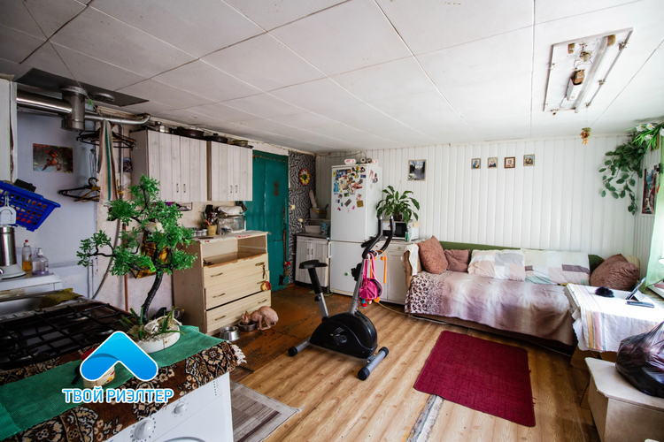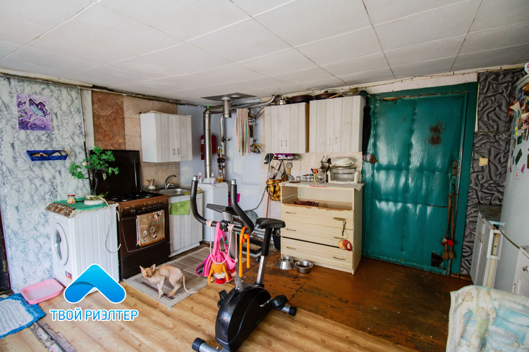 * Деревянный дом с кирпичной пристройкой 2001 года. Все окна ПВХ. Общая площадь 59,3 кв.м. Две жилые комнаты и кухня в аккуратном жилом состоянии, еще одна жилая комната и санузел (пристройка) – в строительной отделке. В санузел заведены канализация и водоснабжение. Достаточно высокие потолки 2,3-2,7 м. Огромная кухня площадью 18,8 кв.м. оборудована газовой плитой, установлен двухконтурный современный газовый котел для отопления дома и подогрева воды. Есть погреб. На участке имеется хороший кирпичный гараж для машины. Несколько сараев и баня – под снос. При продаже частично останется мебель и техника.