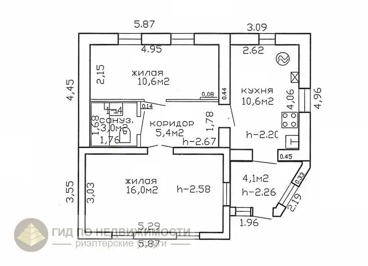 Продается жилой дом в Железнодорожном районе города Гомеля по ул. Озерная. Дом 1960 года постройки. Шлакобетонный. Фундамент бутовый и бетонный. Пристройка 1982 года. В дом заведен газ, центральный водопровод, местная канализация. На земельном участке имеется гараж, баня, сарай, погреб. Строения оформлены. В доме сделан косметический ремонт. Заменены окна, окрашены полы и потолки, переклеены обои, заменены розетки и выключатели, светильники, сделаны откосы ПВХ. Стены в комнатах и коридоре обшиты гипсокартоном. Фасад дома оштукатурен с фасадной сеткой. Окрашен. Кровля шифер. Канализационные трубы ПВХ, водопроводные - металлопласт. Высота потолка от 2,2 до 2,67 метра. Потолки из гипсокартона и ОСБ плиты.
