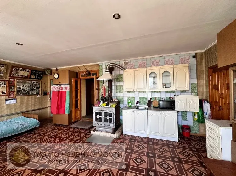 Фундамент высокий - ж/б блоки, стены в жилом доме кирпичные, в жилой пристройке из блочного кирпича, крыша – шифер, остекленение дома – окна ПВХ, высота потолка 2,75 м. Имеется чердак. Вход в дом осуществляется с двух сторон, один из которых основной, а другой – это выход из комнаты -студии, в которой имеется собственная кухня, камин, сантехнический узел, просторная прихожая, что делает дом более функциональным для всех членов семьи.