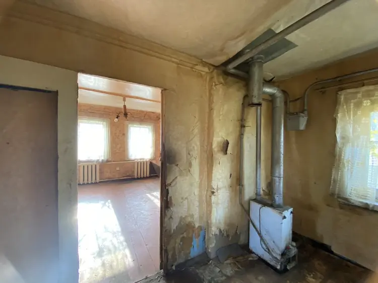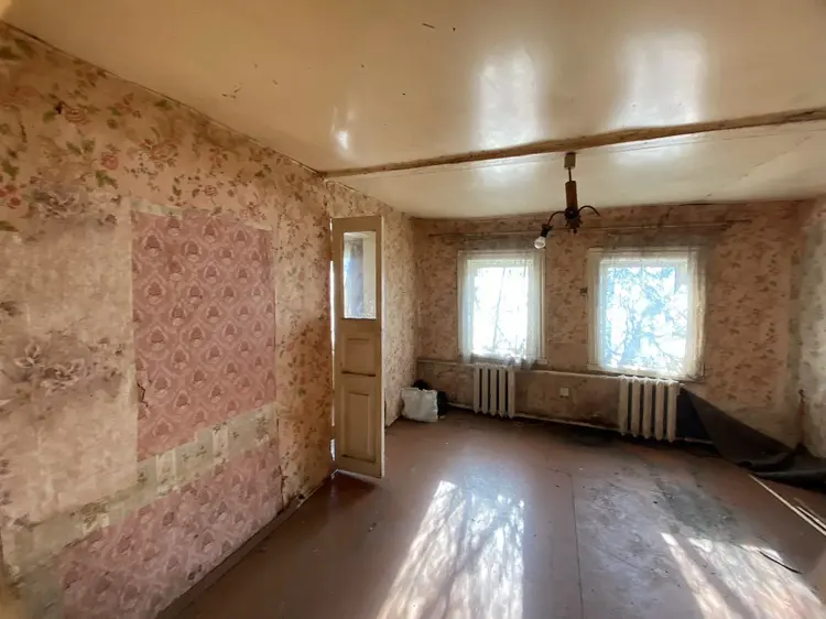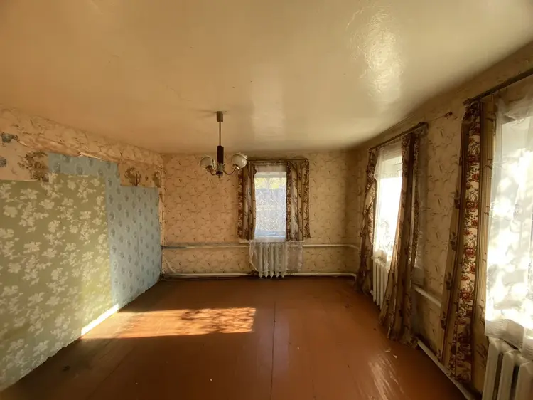 Ширина участка-24,85 метра, длина-82,7 метра. Условно разделен на огород и луг. Жилой бревенчатый дом размером 6,05*3,95 м- 1946 года, бревенчатая жилая пристройка размером 6,05*4,06 м- 1970 года, дощатые сени 5,2*2,97 м -1970 года, дощатая терраса 1,95*1,77- 1970 года, три дощатых сарая-2,96*3,55- 1986 года. Фундамент- кирпичный, крыша- шифер, окна – ПВХ. Общая площадь-41 кв., жилая-35, кв.м. Три жилых комнаты, отопление- газовый котел, с\у на улице. В дом заведен природный газ, электричество. Участок, относительно других жилых домов, находится на возвышенности ( не в низине).