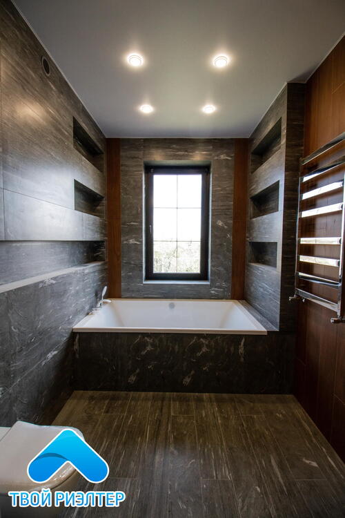 Фасад дома отделан клинкерной плиткой с утеплением. Практически все полы в доме теплые, кроме жилых комнат (спален), там установлены батареи. На полу по всему дому уложен керамогранит, плитка, на лестнице – мрамор, ламинат (в некоторых жилых комнатах ламинат еще не уложен, но закуплен под необходимую площадь и разложен по комнатам).