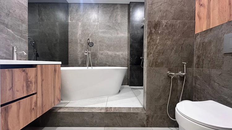 * SPA-зона: Роскошная отдельностоящая ванна для атмосферных вечеров и современный душ с эффектом тропического дождя.