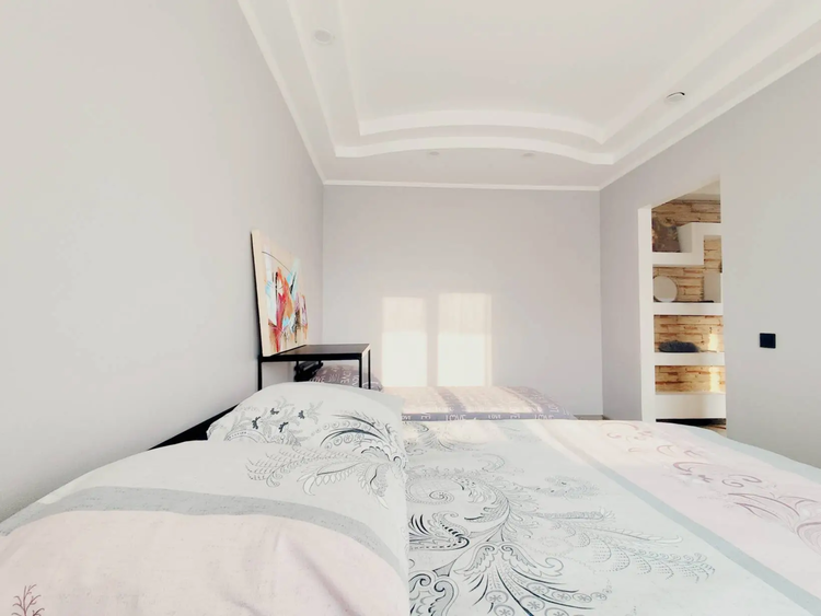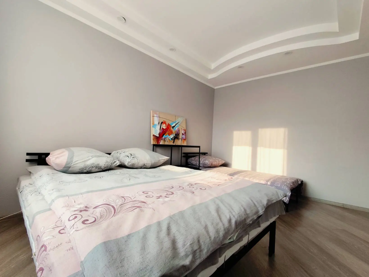 Может проживать до 5 человек. Спальные места 2 (двухспальная кровать) + 2 (двухспальная кровать) + 1 (односпальная кровать).