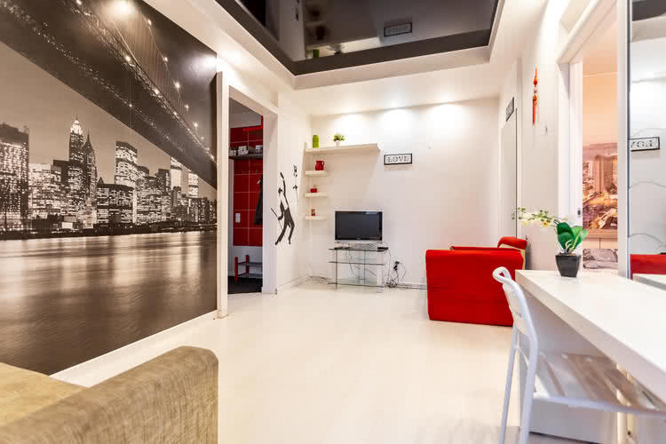К услугам гостей: свежее постельное белье, полотенца согласно количеству гостей, столовые приборы, холодильник, микроволновая печь, стиральная машина, газовая варочная поверхность и электрический духовой шкаф, угловая ванная, электрочайник, фен, утюг, ЖК телевизор СМАРТ, Wi-fi.