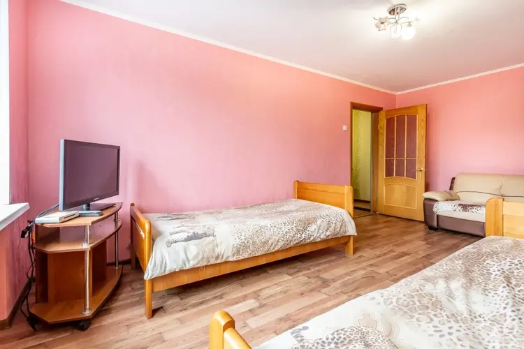 Двухкомнатная квартира по ул. Малайчука. Аэродром. Вместимость 6 человек: 2+2+1+1 (двухспальный диван, двухспальная кровать, 2 односпальные кровати). Удобные спальные места. Комнаты раздельные. Санузел раздельный. Курение на застекленнном балконе. Рядом с квартирой (100 метров) платная стоянка для автомобилей, в том числе грузовых, автомобильная заправка ОАО «Гомельтранснефть Дружба».