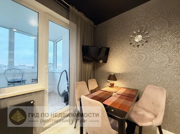 1-комнатная квартира на пр-те Речицком, дом 103, корп.2. Представляем вам прекрасный вариант – 1-комнатную квартиру с современным свежим евроремонтом, которая имеет преимущество расположения в популярном районе города . Эта квартира, расположенная на 9 этаже, есть технический этаж, новый лифт, большой тамбур на три квартиры. Общая площадь 36,5 м², жилая комната - 19,83м2 с уютной нишей для шкафа-купе и рабочей зоной для компьютерного стола. Кухня площадью 7,5м² – идеальное место для приготовления любимых блюд. Просторный раздельный санузел отделан плиткой. Батареи в стенах заглушили, вывели чёрные дизайнерские радиаторы Piano Forte с регуляторами наружу, переустройство узаконено. Окна ПВХ. На полу в комнатах ламинат, потолки декорированы подсветкой. Лоджия 4м2 утеплена и обшита декоративным камнем с прекрасным видом из окна.