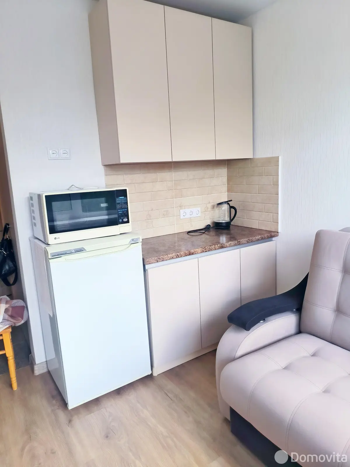 Продается квартира-студия в районе Аэропорта Гомель, в здании гостиницы «Полет». Квартира-студия со свежим дизайнерским ремонтом в теплом кирпичном доме 1987 года. Дом после капитального ремонта, все коммуникации, проводка и водопровод новые. В квартире окно ПВХ с видом во двор, в прихожей встроенный шкаф, на полу плитка, ламинат, новая межкомнатная дверь. Кухонный гарнитур, вся необходимая посуда, техника и вся новая мебель остаются при продаже. Сан.узел совмещен, сантехника новая. В квартире хорошая тепло и звукоизоляция. Установлены счетчики воды, много розеток. Квартира полностью готова к проживанию. В холле всегда чистота и порядок, есть охрана и уборщица. Частная собственность.