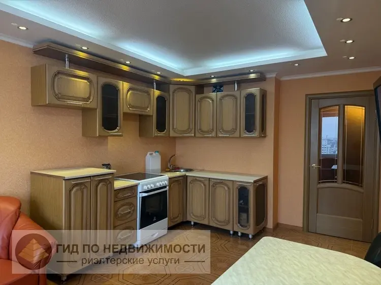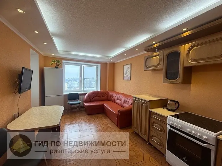 Продается однокомнатная квартира в самом востребованном районе г. Гомеля по улице Головацкого, д. 105А. Квартира находится в монолитном восемнадцатиэтажном доме на 17 этаже. Общая площадь по СНБ – 53 кв.м., жилая – 20 кв.м., кухня – 17 кв.м. Год постройки – 2008. Высота потолка – 2.5 м. Стены наружные – блоки из ячеистого бетона; внутренние – кирпичные, ячеистые блоки; перекрытия – монолитные ж/б. Раздельный санузел. Выход на лоджию возможен через кухню и комнату. В квартире выполнен ремонт из качественных материалов. На полу плитка и ламинат. Окна ПВХ. Прекрасный панорамный вид из окна. Большая часть мебели останется при продаже. В доме 2 лифта. Парковка для автомобилей.